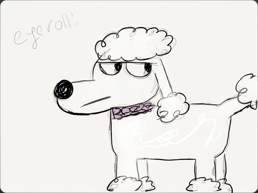 Here are some cartooney sketches of what would be Chloe. I'm trying to make a plush poodle in my style of drawing, mostly to stay away from the Ganz design of the Webkinz poodle so I won't have to deal with copyright headaches and all.