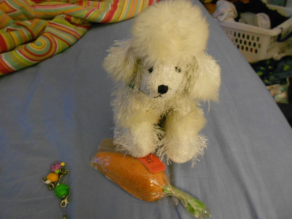 This is a picture of Chloe encouraging me to use the new organic earth-friendly soap shaped like a karrot that my friend gave me (that she won in a raffle) because apparently I am very smelly.